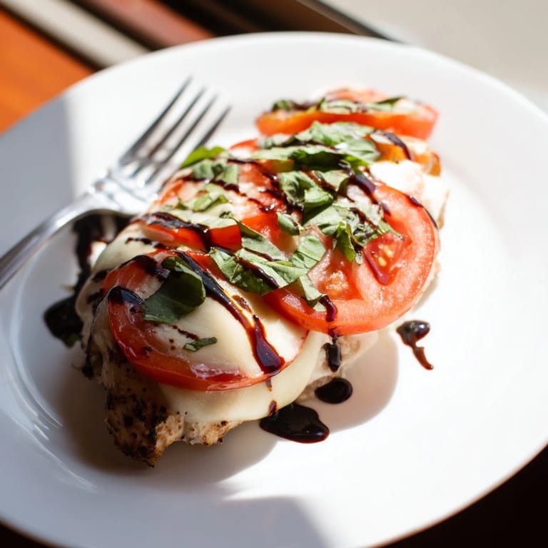 Save My neighbor knocked on the door one August evening holding a bag of tomatoes from her garden, more than she could use. I had chicken thawing and mozzarella in the fridge, and suddenly this dish came together like it had been waiting all along. The smell of balsamic reducing on the stove mixed with basil from the windowsill, and I knew I'd stumbled onto something I'd make again and again. It felt less like following a recipe and more like letting summer cook itself.