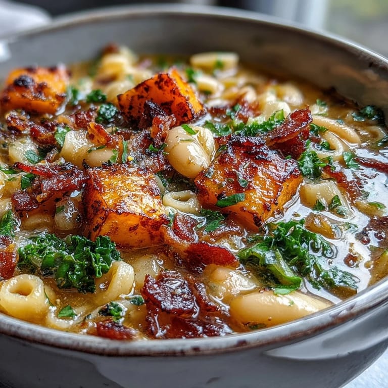 My kitchen floor was covered in squash seeds the first time I attempted this hearty version. I had accidentally bought a massive butternut that required some serious muscle to peel and dice. While the pot simmered the house filled with the scent of thyme and savory pork fat. My neighbor knocked on the door just to ask what was cooking because the aroma reached the sidewalk. We ended up sharing a bowl standing at the counter while the wind howled outside.