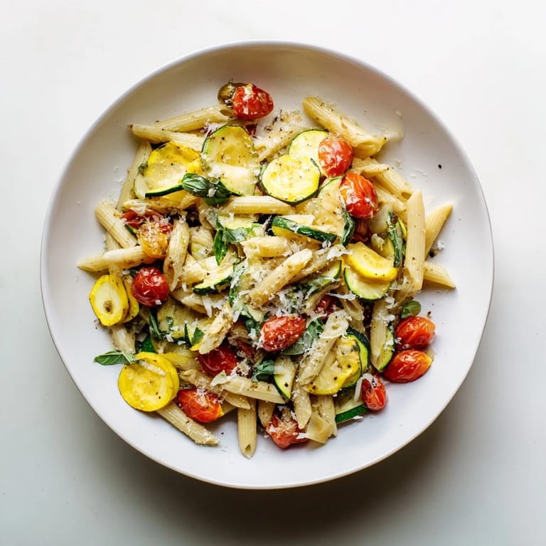 The first time I made this for friends, I panicked because I forgot to buy Parmesan. Turns out, nobody missed it. The garlic and tomato juices create this light, silky coating that clings to every piece of pasta, and the basil adds just enough herby brightness to make it feel complete. One friend went back for thirds and asked if I'd catered it. I laughed and pointed at my cutting board still covered in squash trimmings.